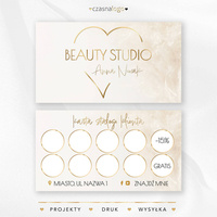 Elegancki projekt vouchera podarunkowego ze złotą lustrzaną czcionką na białym satynowym tle